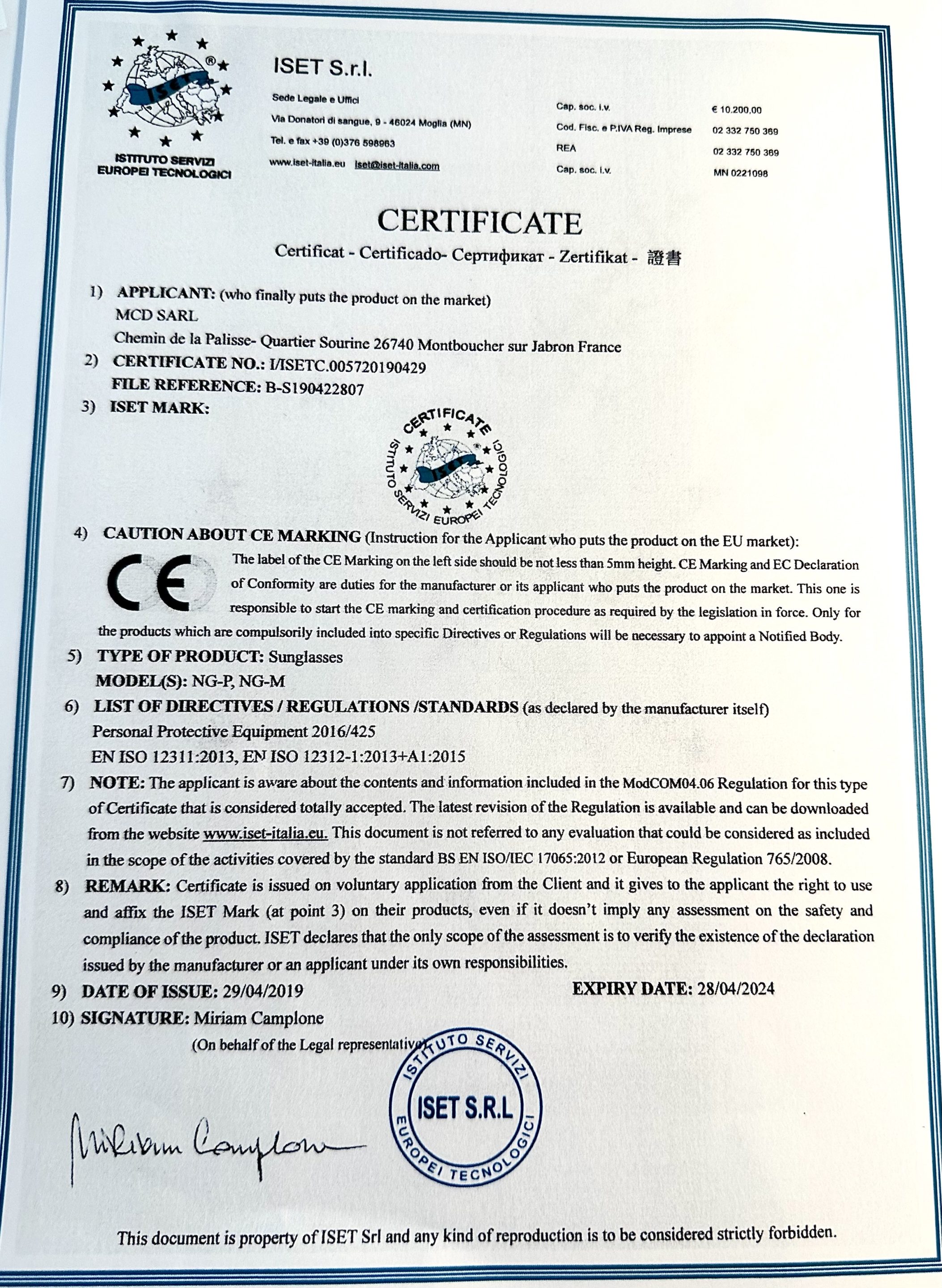 | Certificat CE | I/ISETC.005720190429 – Voir le certificat > https://shoot-off.eu/voir/certificat-ce-nextgen/ |